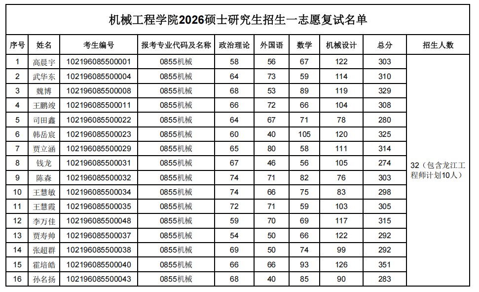 机械工程学院2026年硕士研究生一志愿考生复试公告