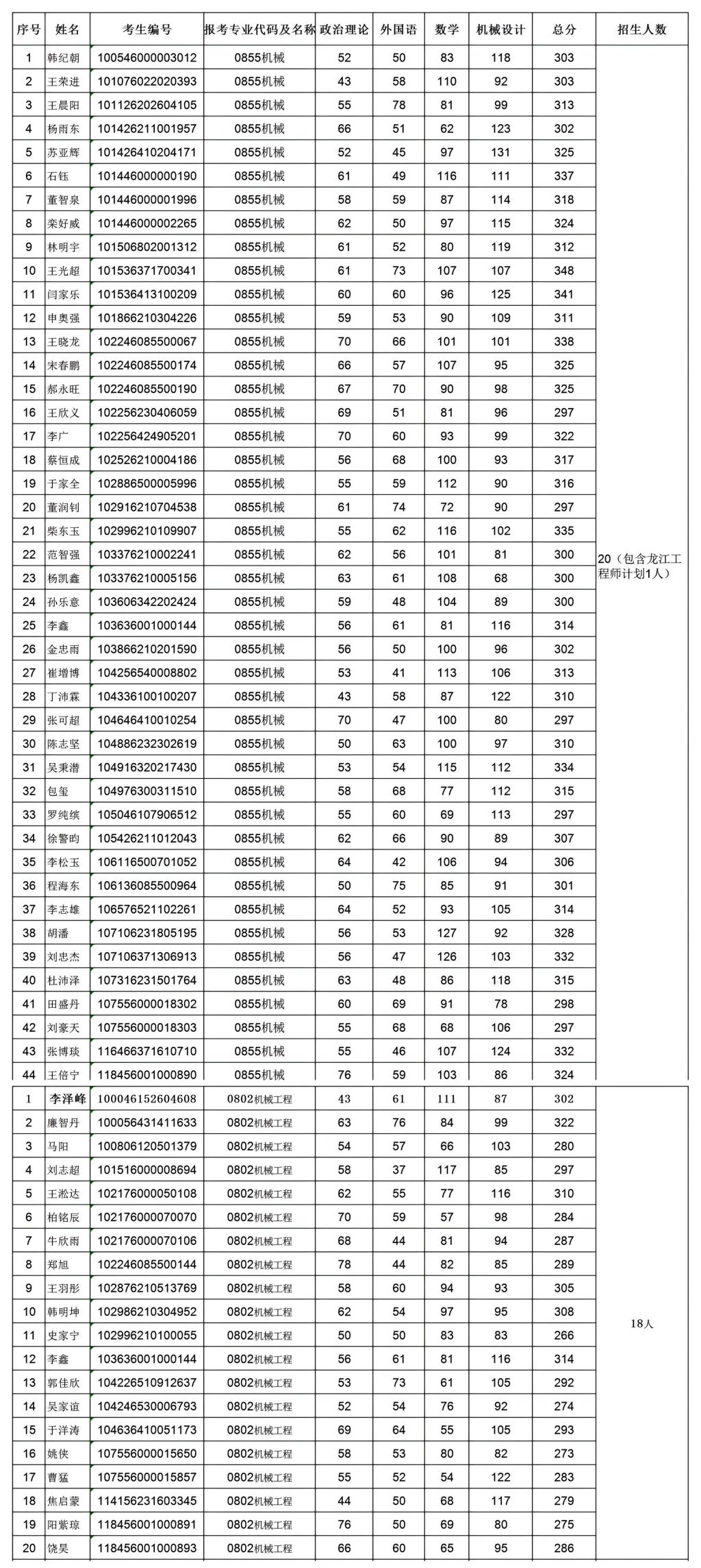 机械工程学院2026硕士研究生招生调剂复试名单(第一批)